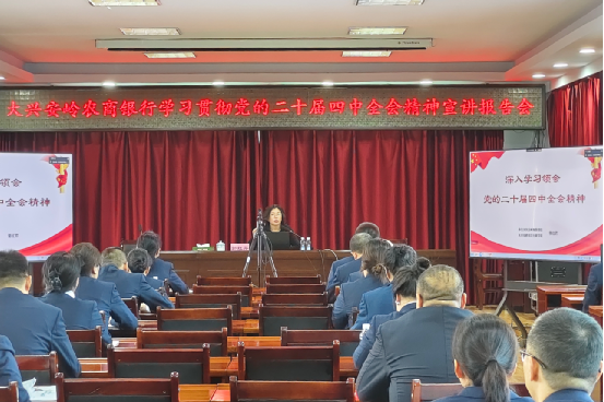 12月11日,大兴安岭农商银行召开学习贯彻党的二十届四中全会精神宣讲报告会,特别邀请大兴安岭地委党校副校长郭红芹教授,为全辖党员干部送上一场兼具理论深度与实践指导意义的系统解读。