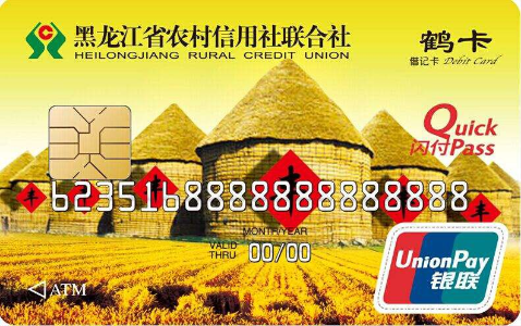鹤卡全称鹤卡借记卡,黑龙江省农村信用社面向社会公开发行的银联标准卡。该卡以“一卡多账户、一卡多功能”为特点,集定、活期存款账户于一体。是一种金融支付结算工具,由黑龙江省农村信用社联合社发行,使用对象分为个人卡和单位卡,具有存取现金、转账结算、消费、理财、中间业务、自动供款、消费质押等多方面功能;可以作为贷款、粮食直补、代理业务的账户;可以跨行、跨地区、跨境在有“银联”标识的ATM机和POS机等设备上凭密码使用,安全可靠,方便快捷,但是不具有透支功能;可以在开办了农信银业务的其他省农村信用社网点的柜台办理存取款、查询、转账等业务。
