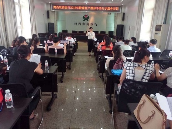 为进一步推进“四零”服务,提升服务水平,体现服务零距离,7月14日,鸡西农商银行组织开展标准化手语知识培训,各支行(营业部)内勤行长、储蓄所长、大堂经理、安保人员、窗口综合柜员共计108人参加培训。